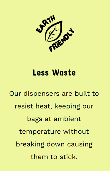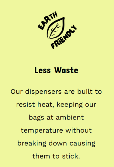 UV Stabilised materials make dispensers long-lasting, which keeps the bags at an ambient temperature (prevents bags from breaking down in the dispenser)