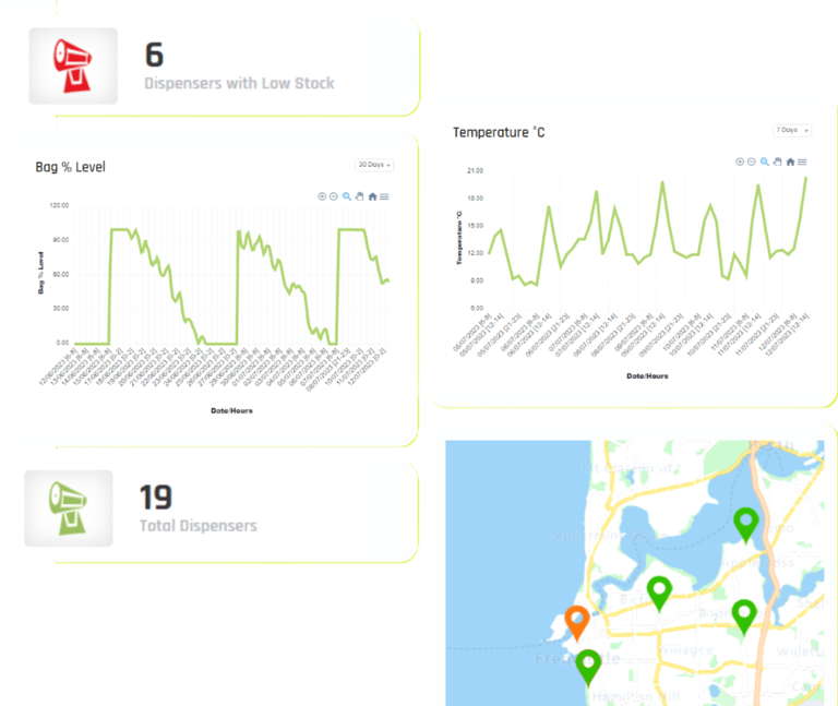 Our dispensers can include a battery-powered sensor that sends real-time data back to your office, providing full visibility of bag levels at all locations. This technology is discreet, reliable and anything but ordinary.